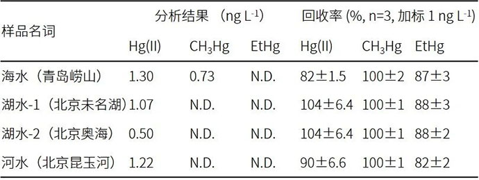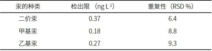 超痕量二价汞和烷基汞的富集检测结果(10 ng L-1)