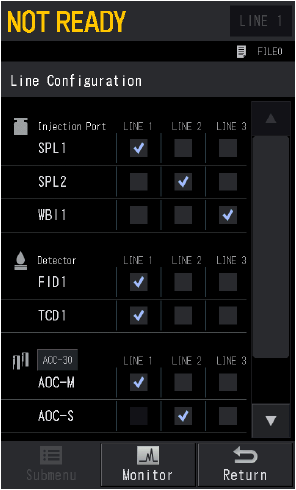 Press HOME button - [Settings]- [Submenu]- [LINE Configuration] to display [LINE Configuration] screen.