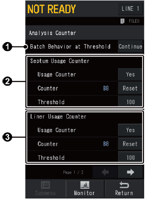 Replace the consumables and then reset the counter on [Analysis Counter] screen.