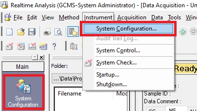- Either click the [System Configuration] icon in the [Main] assistant bar, or click [Instrument] on the toolbar and then click [System Configuration].