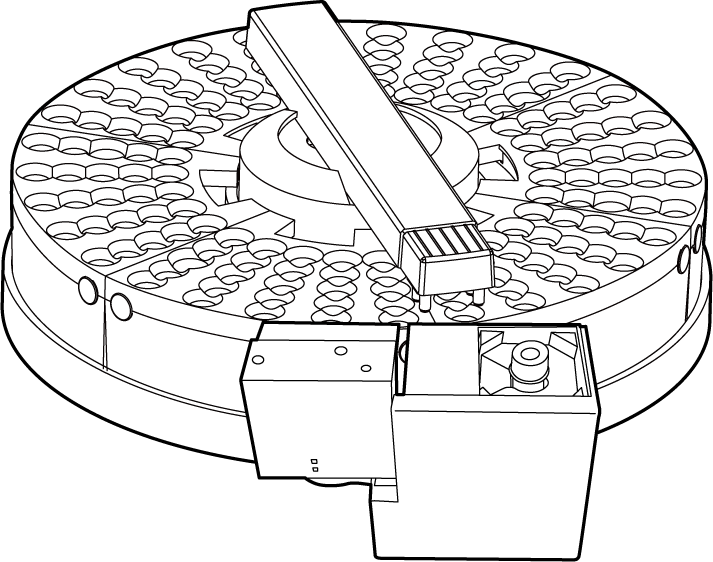 If [Teaching Target] is [AOC-M] or [AOC-S], place the vial at the handover position on the turret according to the vial type (hole labeled 'L1').