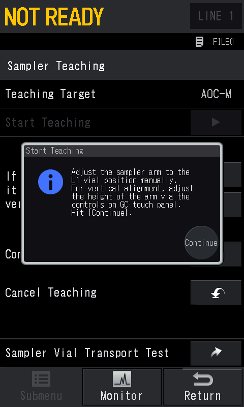 Be sure to perform sampler teaching when you have changed the position of the auto sampler or changed the vial type.