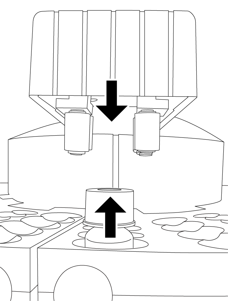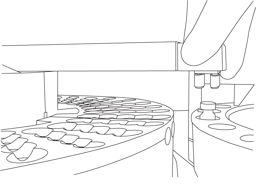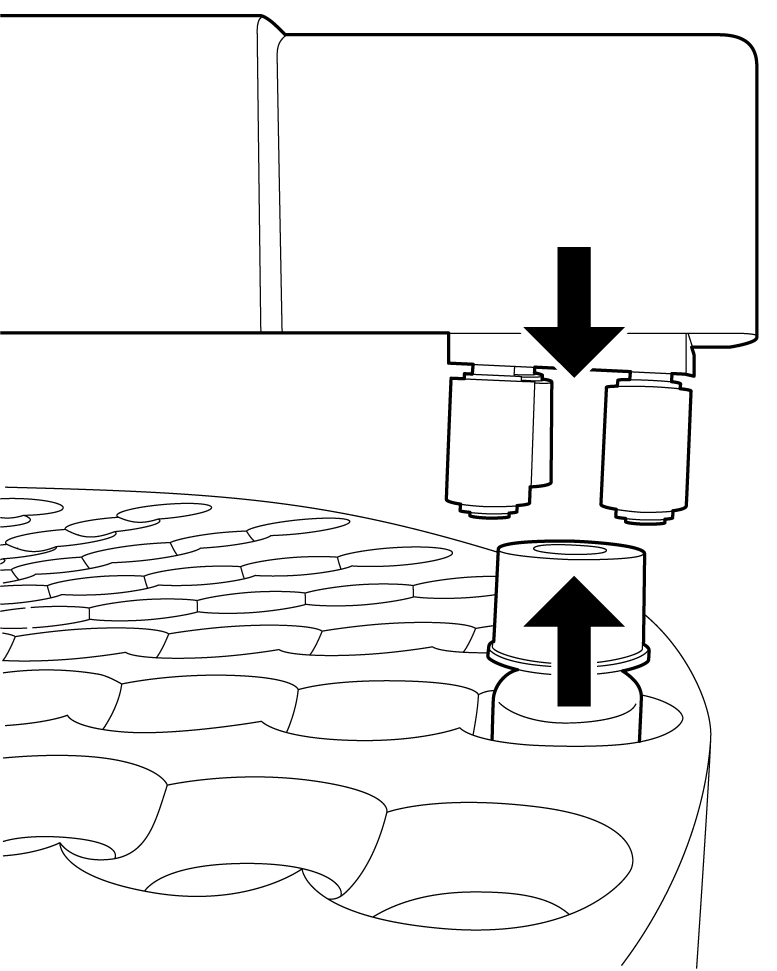 For the rotational motion, align the center line of the arm with that of the vial cap.