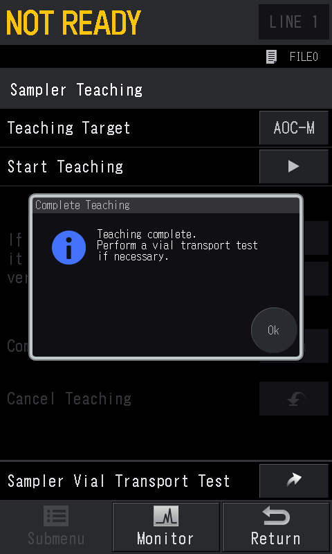 The following screen appears when the teaching has finished. Press [Ok] to complete the teaching.
