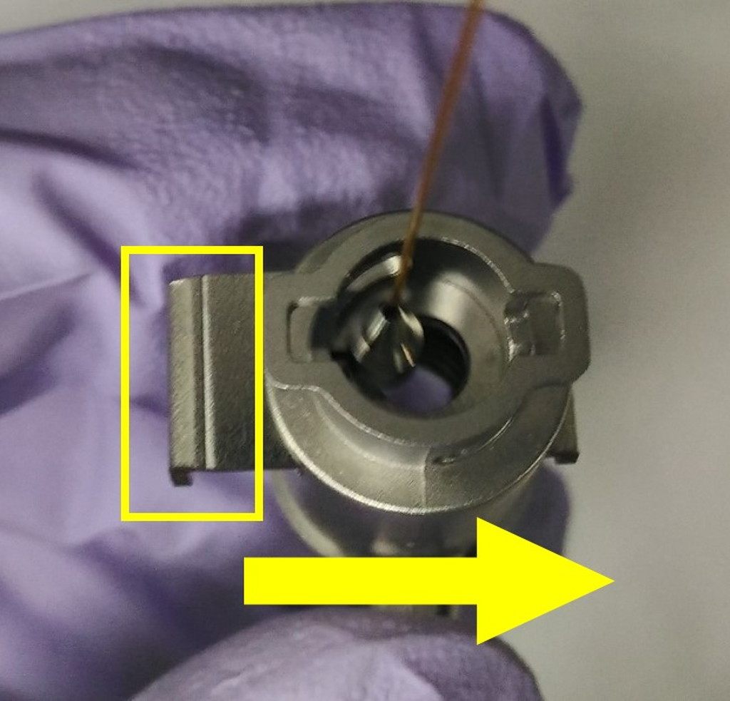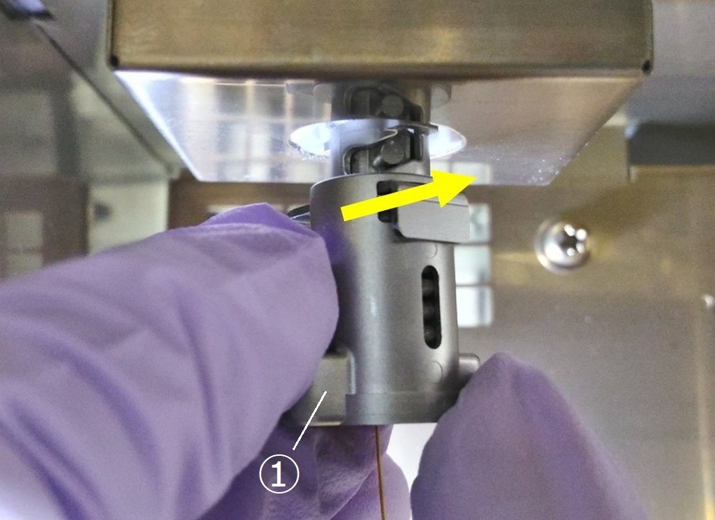 - 拆下滚花螺丝,用镊子夹住压环,取下色谱柱。