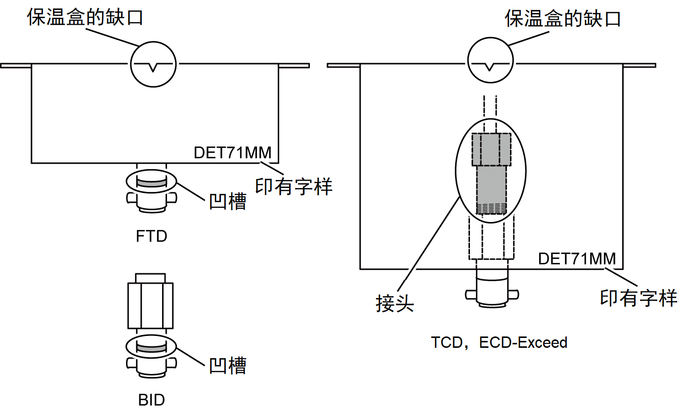 保温盒上有缺口和“DET71MM”的字样(TCD、FTD、ECD-Exceed)