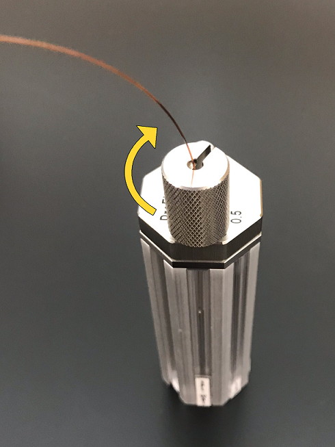 - 将滚花螺丝穿过色谱柱并按顺时针方向旋转。