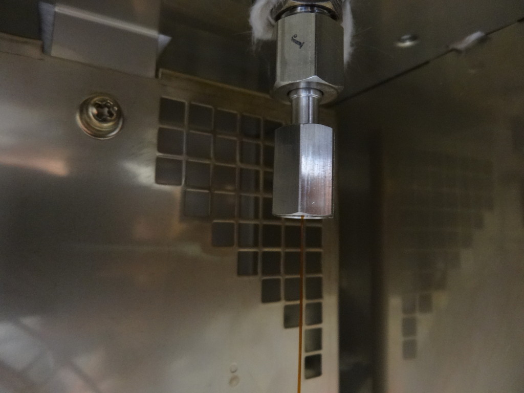 色谱柱流量为2 mL/min以上时,色谱柱的插入长度短于43 mm,将提高ECD池的耐久性(例:色谱柱流量为2~10 mL/min时:41 mm)。因为最佳插入长度根据分析条件和样品不同而异,所以需要调整。调整插入长度时,请先使用