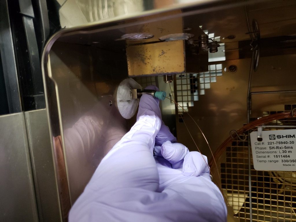 穿过进样垫后,为了将残留在色谱柱前端的进样垫去除,需要进行切割。