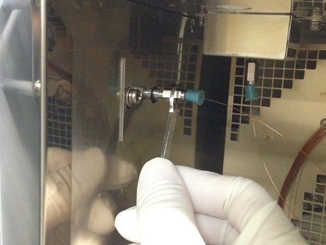确认色谱柱固定在HS-20和检测器侧,然后关闭GC柱温箱的门。