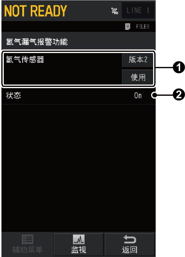 按下[主画面]-[可选设备]-[氢气漏气报警功能],将显示[氢气漏气报警功能]画面。