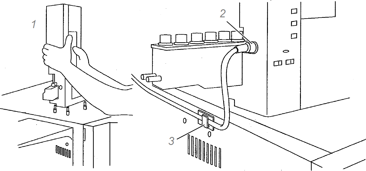 在连接着AOC线的状态下也能安装/拆卸自动进样器。将自动进样器主机移动到远处等AOC线无法到达的位置时,请将AOC线拆下。