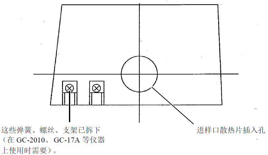 在GC-2014、GC-14A/B上使用时,如下图所示,GC-2010等其他气相色谱仪上需要的弹簧、螺丝、支架已拆下。在GC-2010等仪器上使用自动进样器时需要,因此请妥善保管。