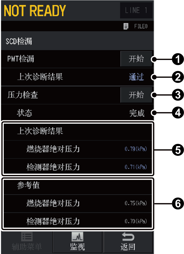 - 压力检查过程中,SCD的风扇和真空泵处于开启状态。此时不会进行SCD的各种气体控制和温度控制。
