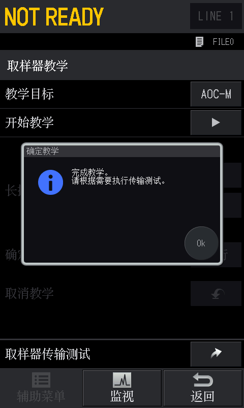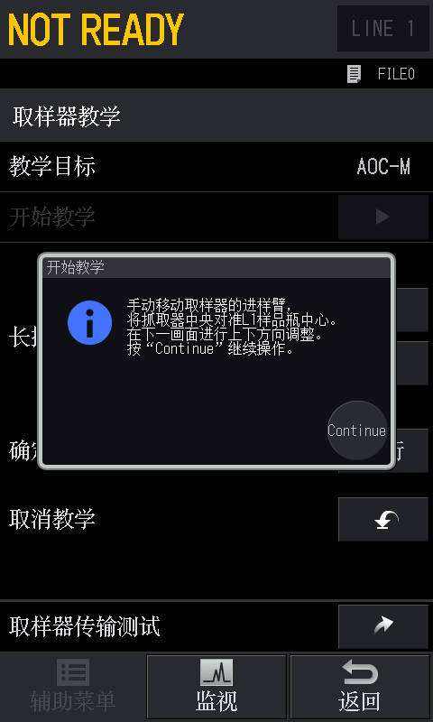 然后,进样臂移动至自动取样器上的初始位置,进行教学确定操作。