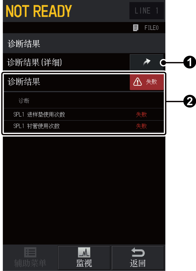 诊断结果 | 可确认诊断结果和诊断结果为“失败”的项目列表。 ・通过:诊断结果在阈值范围内时显示。 ・失败:诊断结果超出阈值范围时显示。 ・取消:中断诊断时显示。 |