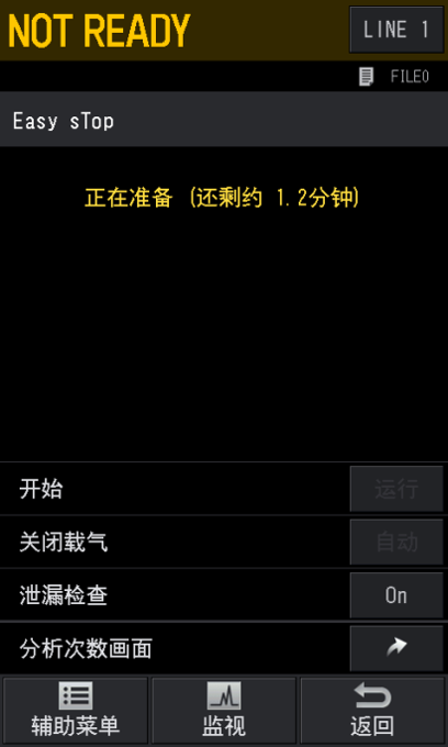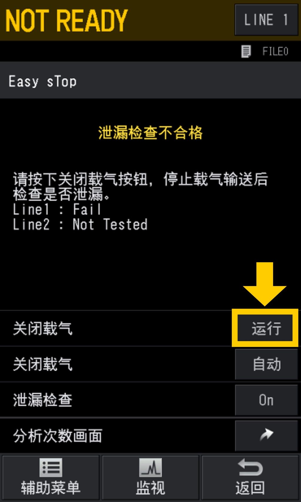 如果泄漏检查结果为Fail,请按下[关闭载气]-[运行]停止输送载气后,检查是否泄漏。