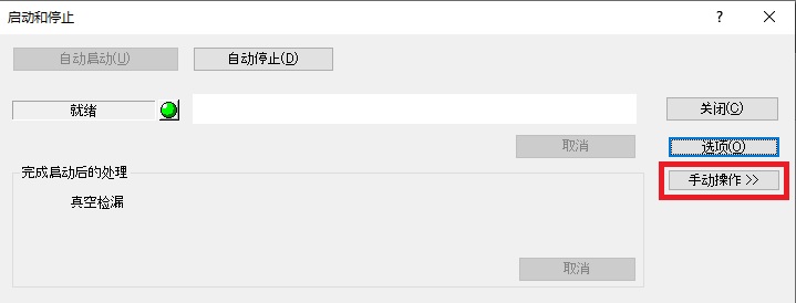单击[启动和停止]窗口的[手动操作]按钮。