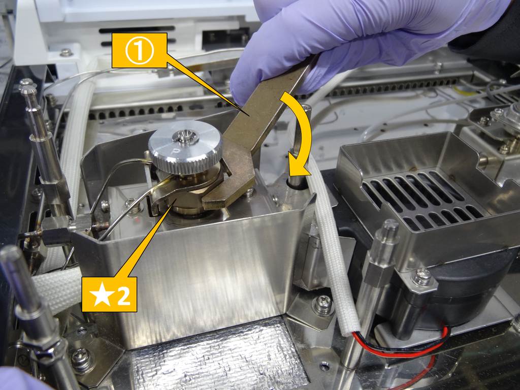 安装玻璃衬管固定螺母(★2),用INJ用扳手(①)固定。