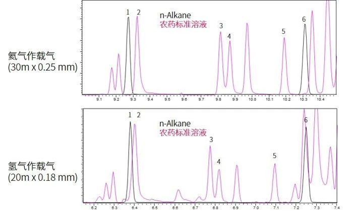 通过方法参数转换得到与使用氦气时相似的色谱图
