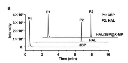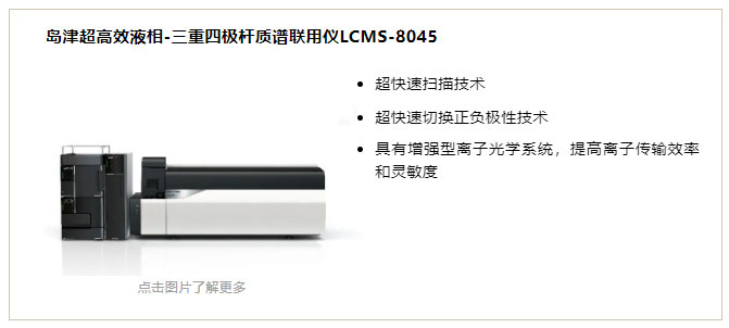 在此研究过程中,需要测定X射线照射的X-MP中的HAL和3BP的封装率,但由于分光光度法及液相色谱法的灵敏度无法满足检测需求,且有基质干扰,因此选用开云手机登录入口·(中国)官方网站LCMS-8045完成了封装率的测定——开云手机登录入口·(中国)官方网站LCMS-8045拥有最快30000U/S的扫描速度和5 msec超快速的正负极性切换功能,具有远高于紫外检测器的灵敏度,可实现对痕量HAL和3BP的定性、定量、正负离子同时检测。