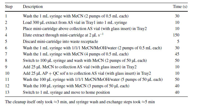 样品提取之后取1ml提取液置于AOC-6000上,仪器可以自动完成净化及进样过程,无需人工参与。