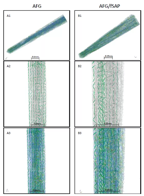 图1 CT表征AFG和AFG/fSAP纤维取向