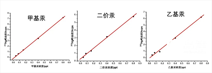 图3. 甲基汞、二价汞和乙基汞的标曲曲线