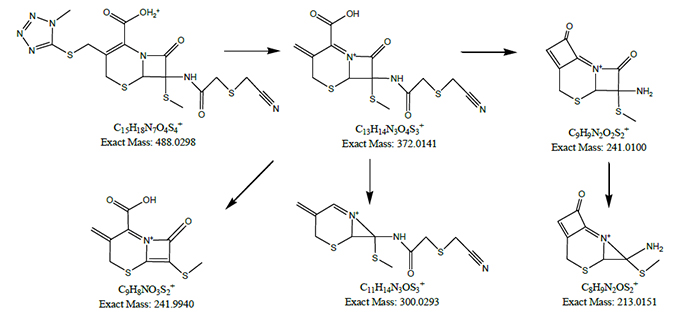 本研究对头孢美唑中的3种未知杂质进行了科学合理的定性分析,对于头孢美唑的质量控制及安全性评价具有重要意义。本分析方法适用于β-内酰胺类抗生素中未知杂质的分离和定性,具有很强的通用性,同时可对化学药物、天然产物、多组分生化药等复杂组成体系进行定性鉴别,从而提供可靠的质量控制分析方法。