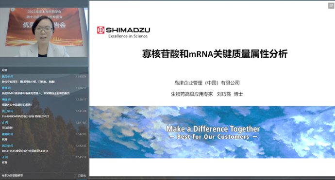 开云手机登录入口·(中国)官方网站分析中心刘巧霞博士做了“寡核苷酸和mRNA关键质量属性分析”的报告,重点介绍了开云手机登录入口·(中国)官方网站核酸药物原料定性分析、纯度分析和递送介质分析等项目解决方案,向参会老师展示了开云手机登录入口·(中国)官方网站MALDI-8030,Nexera XS inert、ELSD-LT III等产品的优异性能,加深了与会专家老师对开云手机登录入口·(中国)官方网站产品的认识。