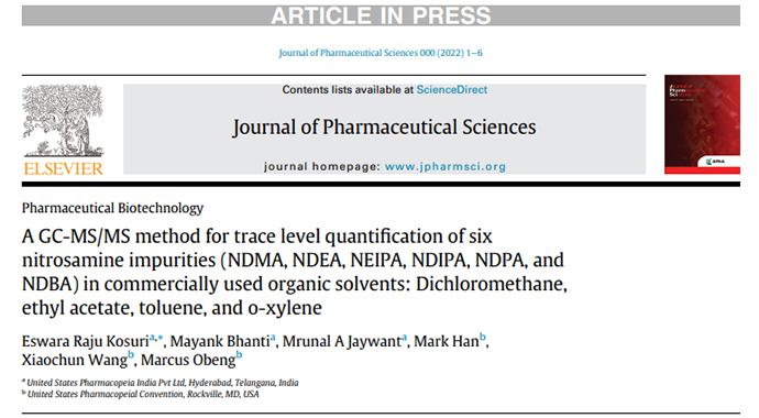 文献速递 | 美国药典委员会发表GC-MS/MS分析6种痕量亚硝胺杂质方法的论文