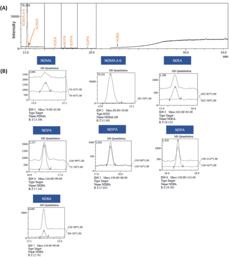 注:N-亚硝基二甲胺(NDMA)、N-亚硝基二乙胺(NDEA)、N-亚硝基乙基异丙基胺(NEIPA)、