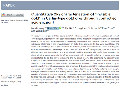 JAAS封面文章:XPS助力卡林型金矿中“不可见金”定量表征研究取得突破