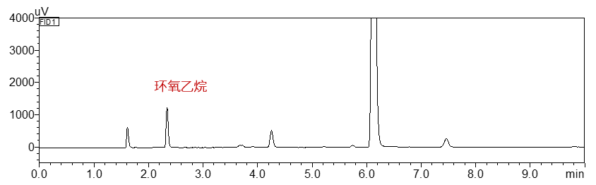4209《药包材环氧乙烷测定法》公示稿中,第一法第二法均采用的是气相色谱法,参考4209色谱条件,环氧乙烷色谱峰良好,色谱图如下: