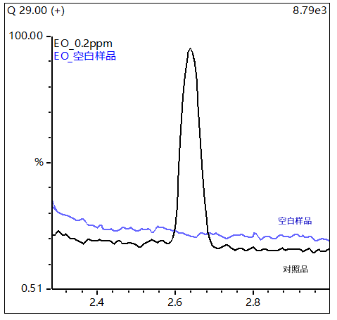 环氧乙烷对照品(0.2 μg/mL)与空白样品(预灌封注射器组合件)对比图