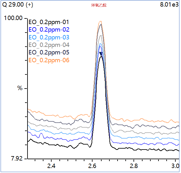 环氧乙烷GCMS谱图对比图(0.2 μg/mL)