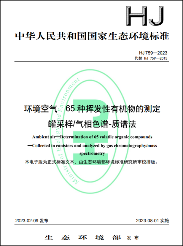 挥发性有机物(VOCs)是PM2.5和臭氧污染的重要前体物。‘十四五’规划纲要明确要推进PM2.5和臭氧的协同控制,提出加快VOCs排放综合整治。新形势下的蓝天保卫战迫切需要全面加强VOCs的综合治理,生态环境部于2023年2月9日发布了HJ 759-2023《环境空气 65种挥发性有机物的测定 罐采样/气相色谱-质谱法》(以下简称新标准),并将于2023年8月1日正式实施。