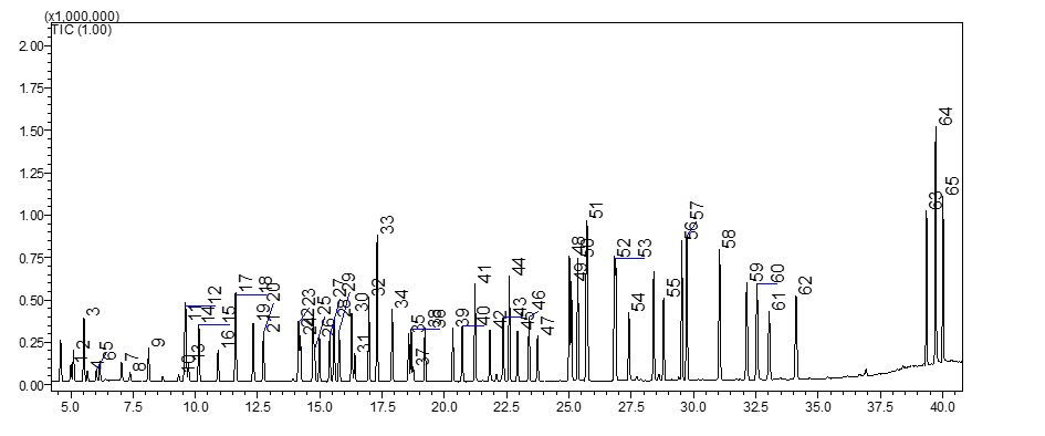 图1. 65种VOCs总离子流图(2.5 nmol/mol)