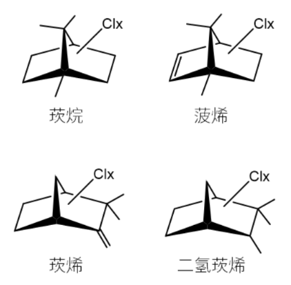 毒杀芬(Toxaphene)是一种组成复杂的有机氯农药,由于它的同类物数量众多,环境介质中毒杀芬的分析一直是环境科学学者面临的难点。毒杀芬根据碳骨架结构可以分为莰烷、菠烯、莰烯和二氢莰烯。