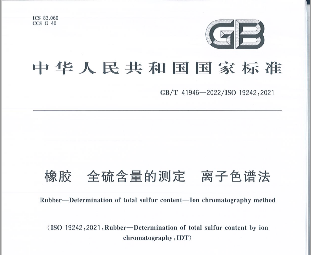 色谱检测方法新国标来啦 —GB/T 41946-2022/ISO 19242:2021 橡胶 全硫含量的测定 离子色谱法