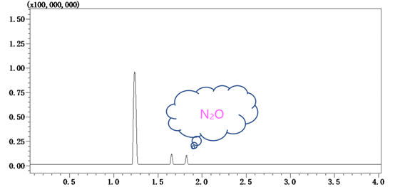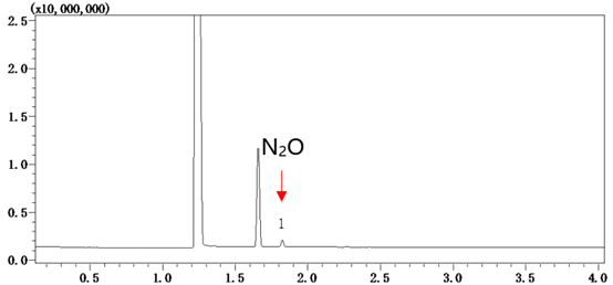 取实际缴获的笑气样品,进行取样分析,得到样品色谱图如下图所示,经定性,样品中检测出N2O成分。