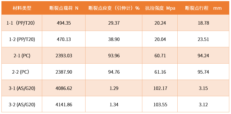 我们选取几种塑料材料:PP(高聚物聚丙烯)/PC(聚碳酸酯)/AS(丙烯腈-苯乙烯共聚物),进行拉伸弯曲试验。