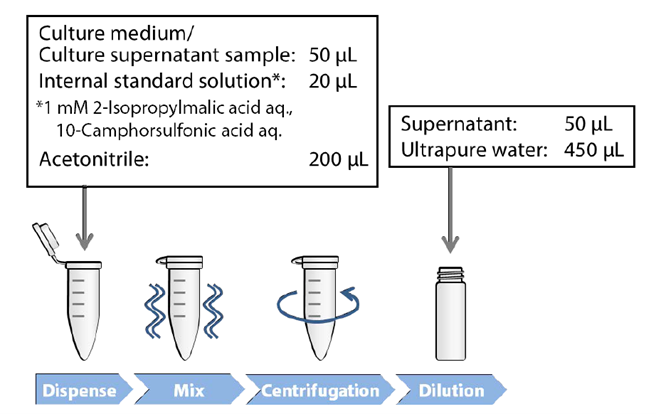 本应用报告使用LCMS-8060NX分析 140多种有机化合物,并使用 ICPMS-2030分析 CHL-YN 抗体产生细胞系培养物的培养基和培养上清液中的 9 种无机元素。通过这些数据,研究人员得以确定参与抗体生产的成分和代谢途径。