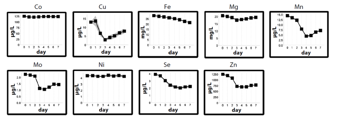 图6 ICP-MS测定培养上清液中金属组分随时间变化的过程