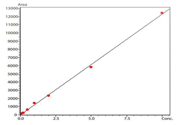 对标准样品数据进行处理制作校准曲线,如图1所示,在0.1~10ng/mL的浓度范围获得了满意的线性结果,相关系数R = 0.999。