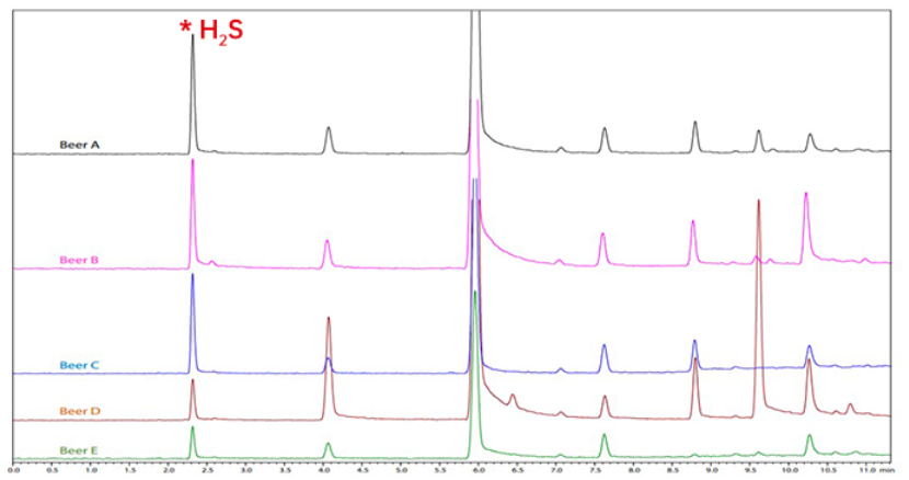 挥发性硫化物对啤酒的风味影响是利弊兼存,但是大部分情况下,硫化物的异味给消费者感受是这瓶啤酒有问题,其可能已经变质,或酿造和发酵工艺不良,或储存不当。啤酒企业可通过Nexis SCD-2030与顶空(HS)联用快速进行痕量挥发性硫化物分析,通过控制不良硫化物的影响提升啤酒品质