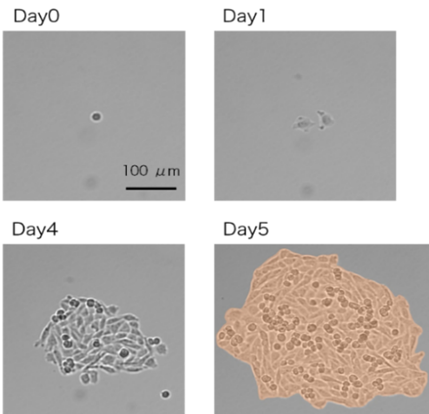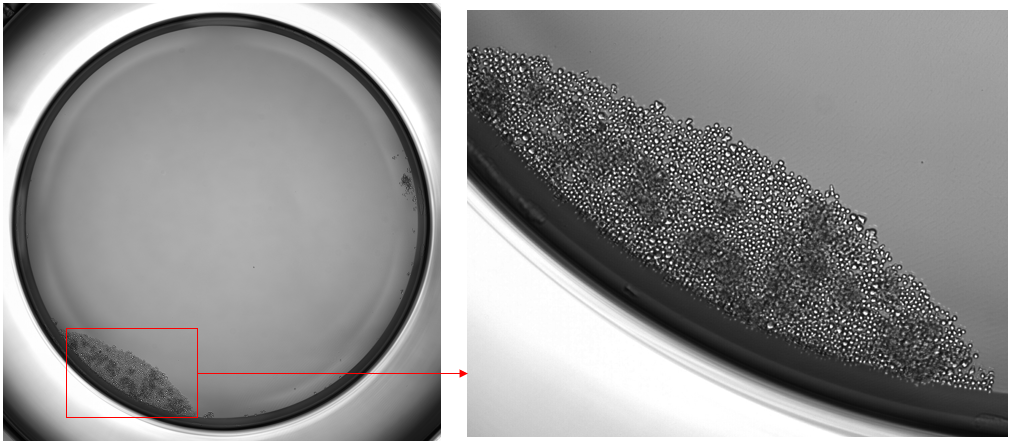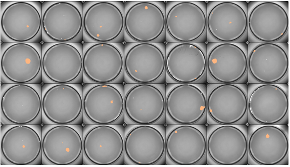 通过深度学习工具建模生成分析模型,自动识别并分析孔内Day0天单细胞及长成的克隆,并圈出细胞所在位置,