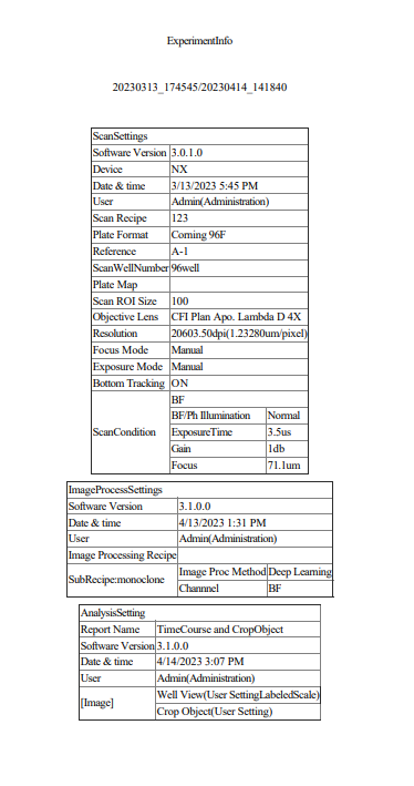 选择感兴趣的单克隆孔导出单克隆生长追踪报告,并附有详细实验数据信息,为溯源单克隆生长提供证据记录。