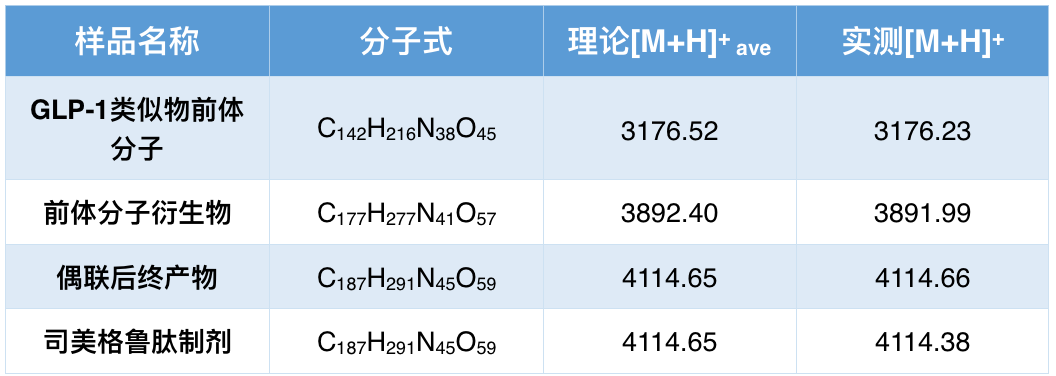 司美格鲁肽合成中间体及制剂分子量检测结果