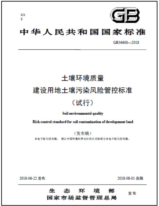为加强建设用地土壤环境监管,管控污染地块对人体健康的风险,保障人民居住环境的安全,生态环境部发布了GB 36600-2018《土壤环境质量建设用地土壤污染风险管控标准(试行)》。